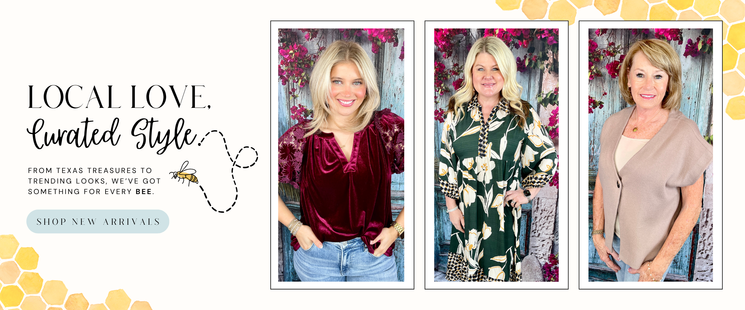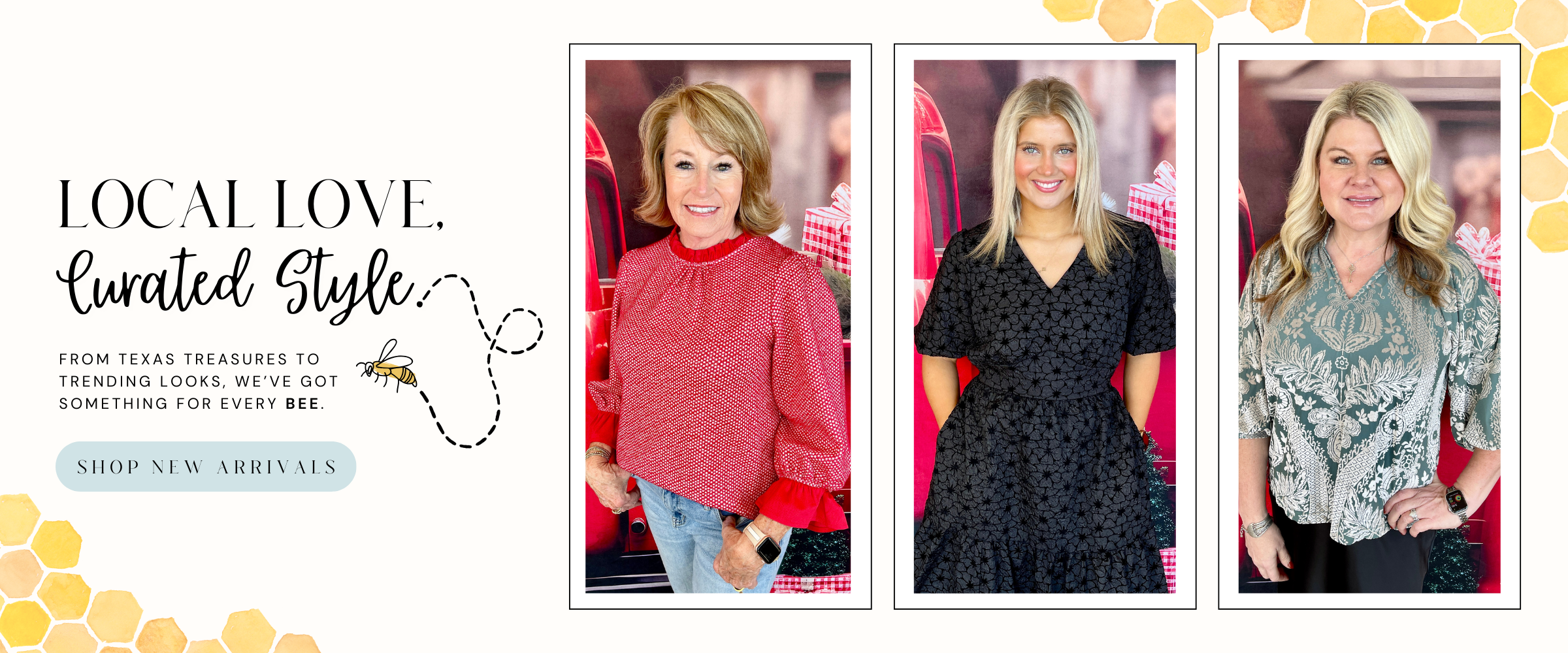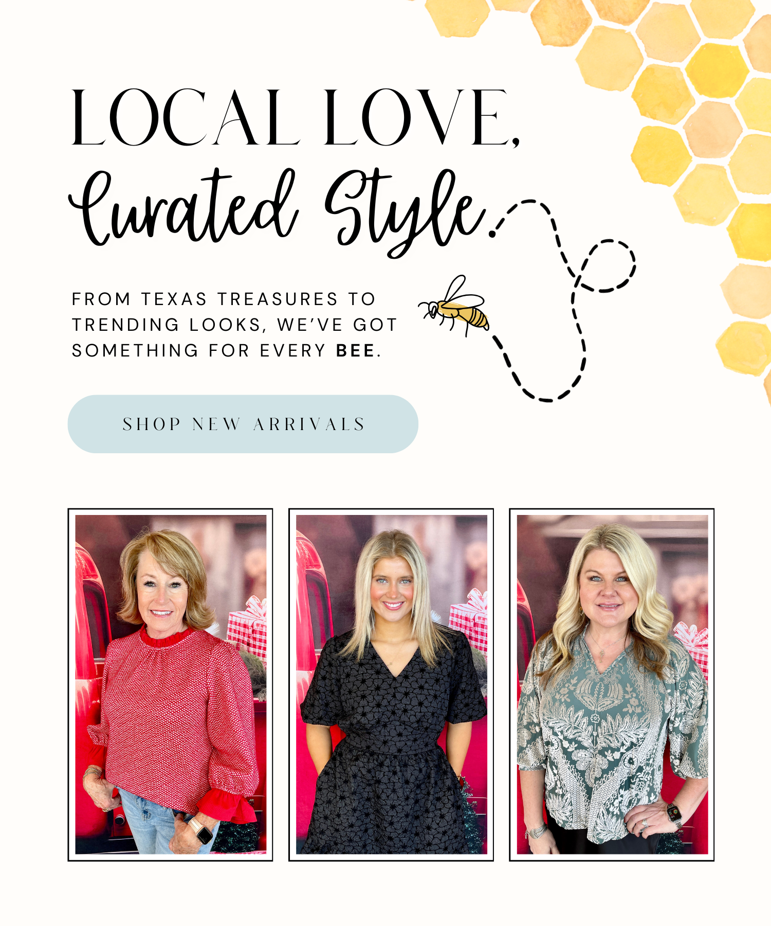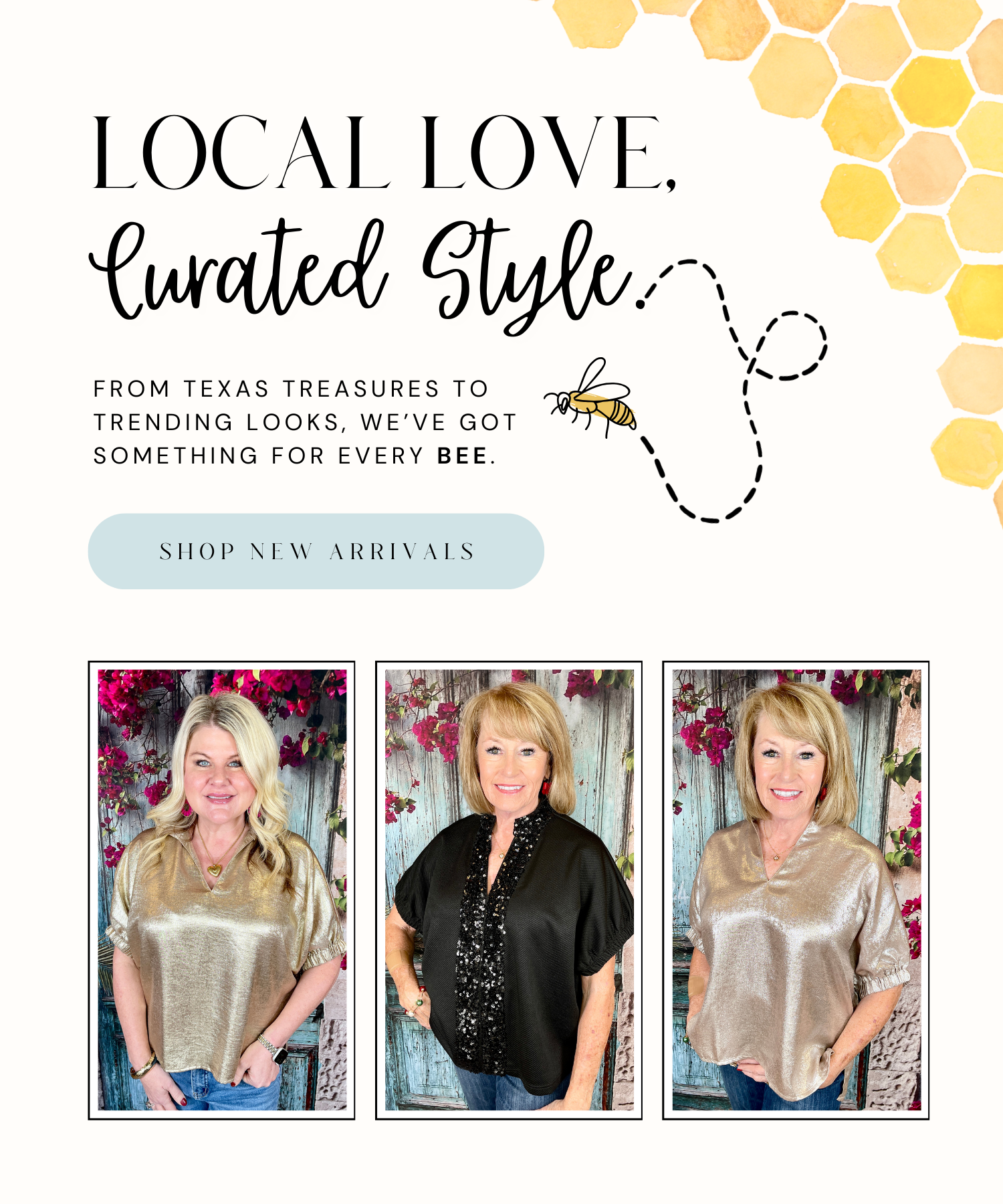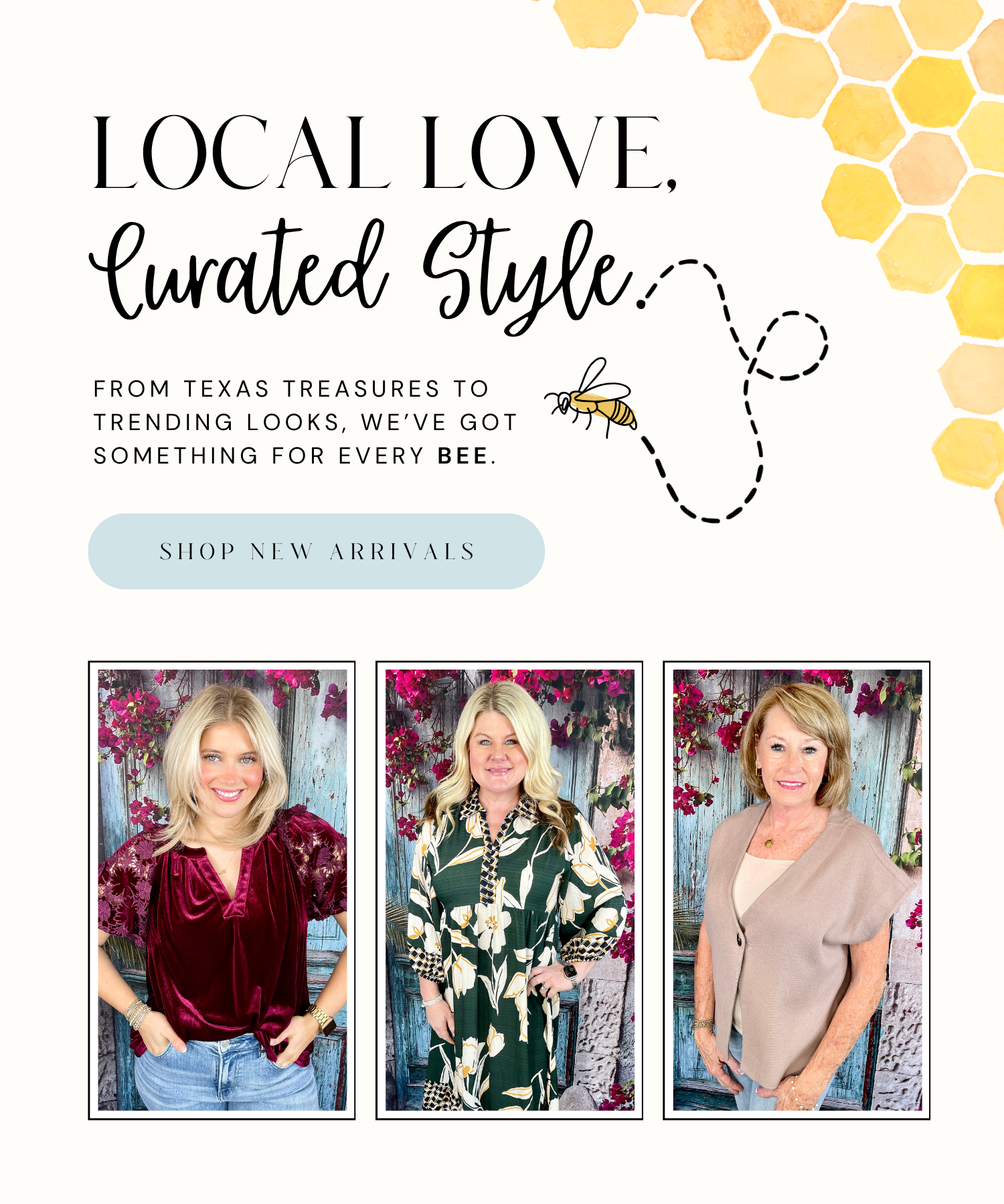 Nestled in the heart of Friendswood, Texas, Silver Bee Boutique is where Southern charm meets everyday style. Our boutique offers a thoughtfully curated selection of women’s apparel, gifts, and home goods that celebrate quality, personality, and local artistry.