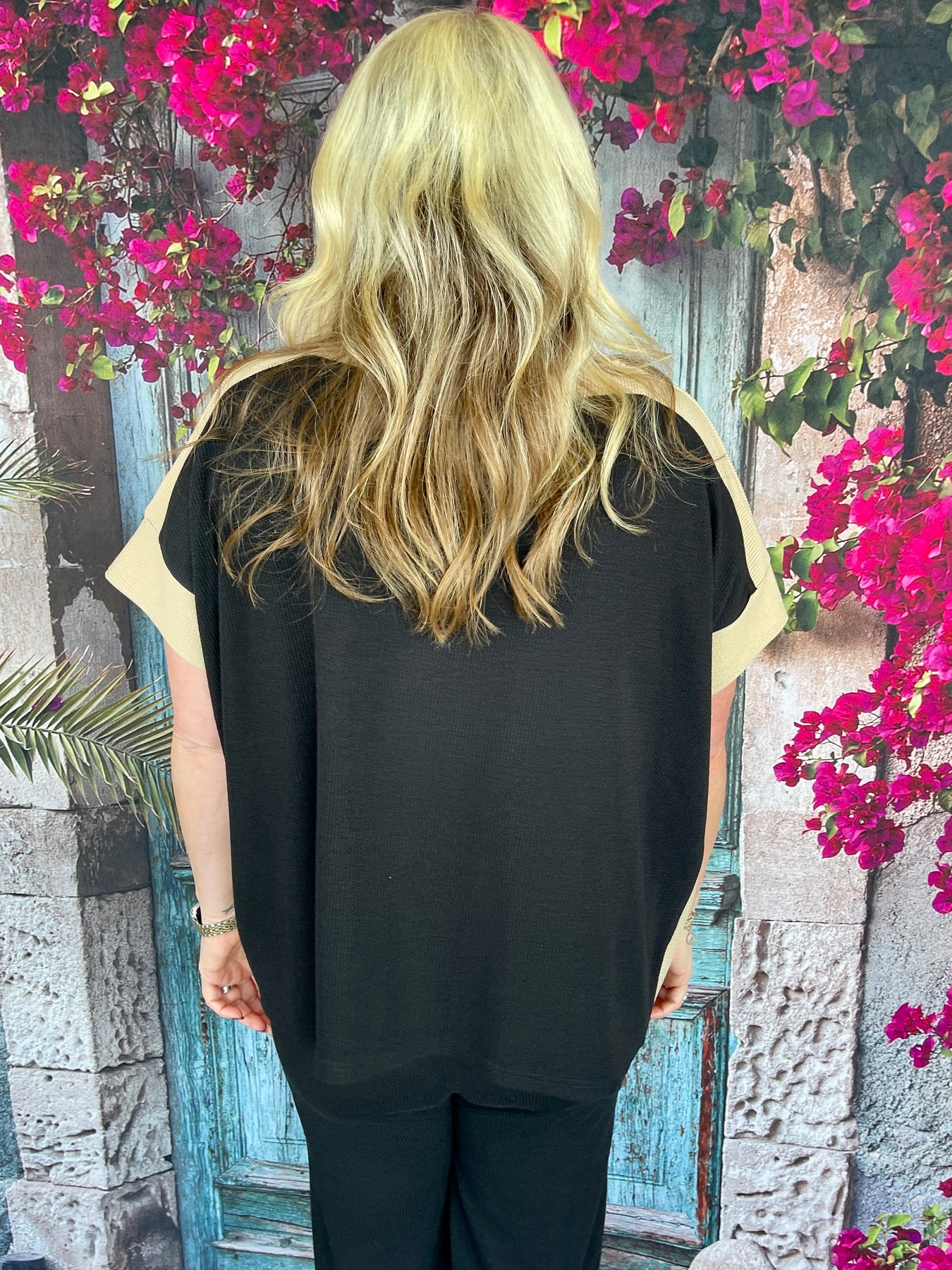 Ultra-soft, ultra-comfy, and still oh-so-cute—the Rockin Robyn Set is your new go-to for both chill and chic days! This two-piece set features a black dolman-cut top with neutral colorblock accents at the neckline and sides, paired with straight-leg pants that include a drawstring waistband and pockets for everyday ease. Whether you’re dressing it down for casual comfort or styling it up with accessories for a night out, this set does it all.