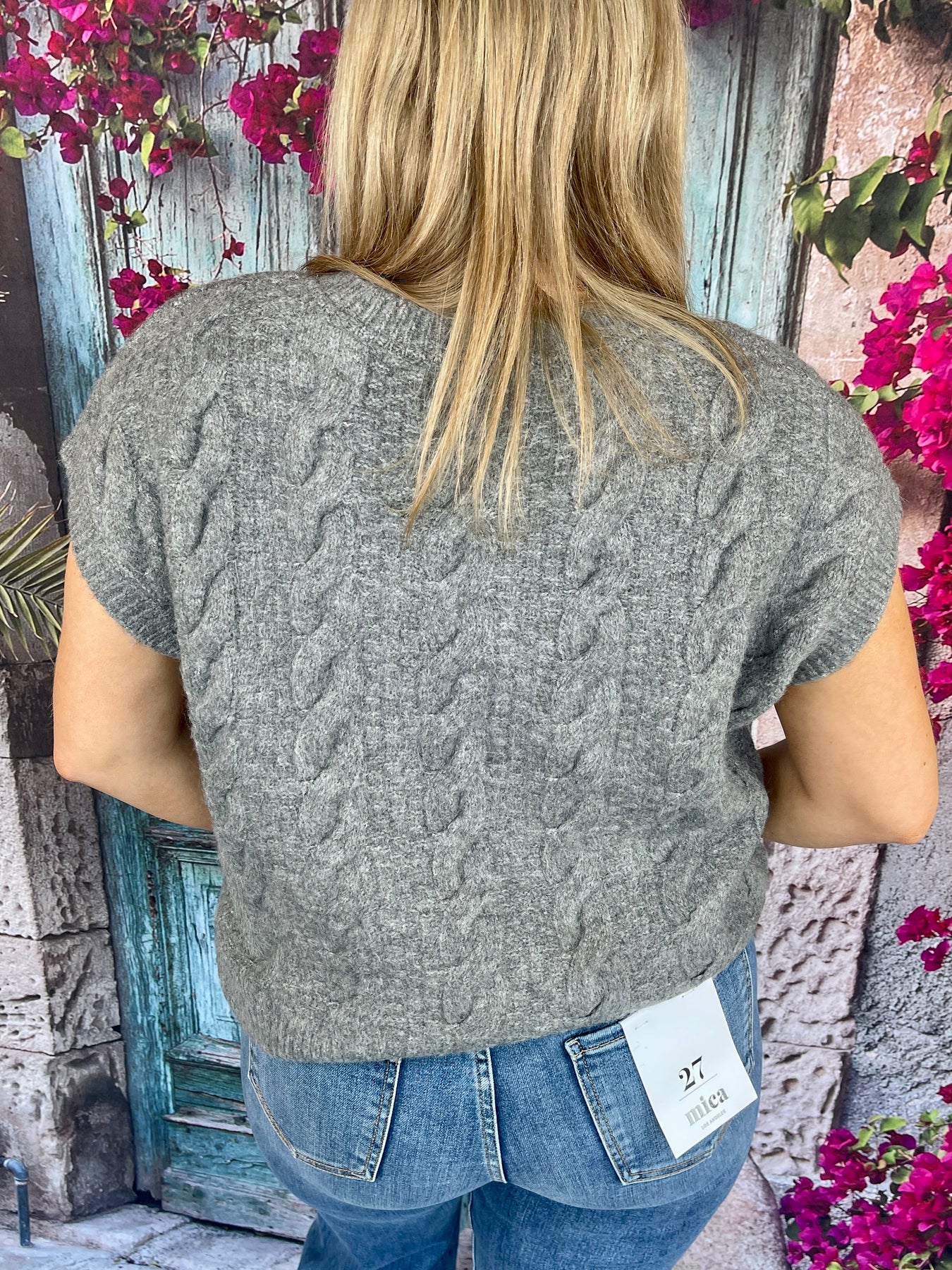 Cozy, soft, and perfectly styled for mild winter days, the Nestled By The Fire Top is a Texas winter must-have! This gray short sleeve sweater features a flattering V-neckline, dolman cut, and classic cable knit texture that feels lightweight yet warm. Soft and fuzzy to the touch, it’s ideal for January days when you want that cozy vibe without the bulk.
