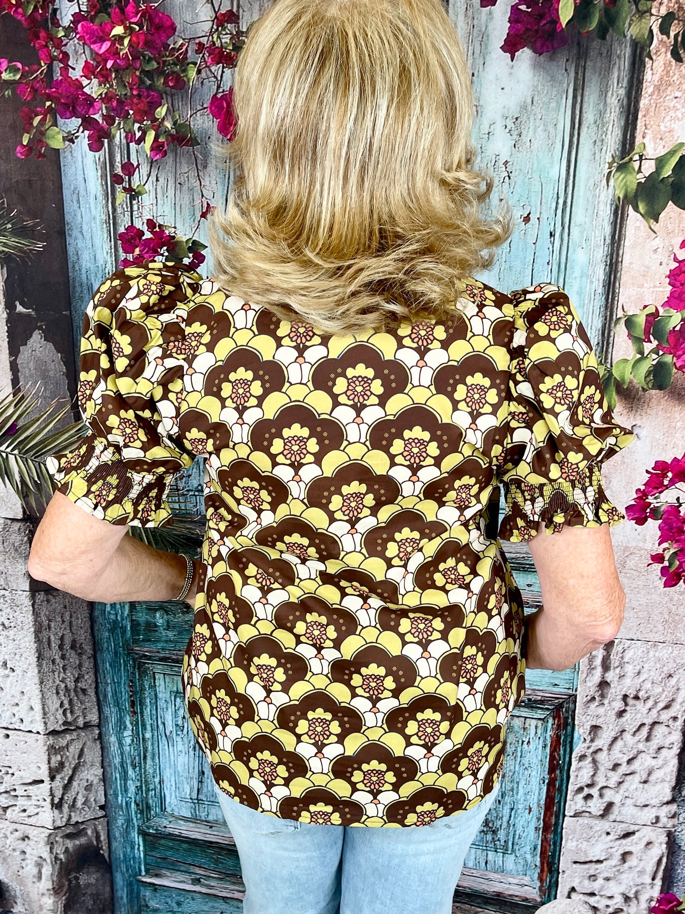 The Wine & Dine Me Top is a rich blend of style and charm! Featuring a brown-colored abstract floral print, this blouse is detailed with puff sleeves, smocked cuffs, and a contrast spread collar for a polished finish. Lightweight and versatile, it’s perfect for fall days or adding a pop of color to your everyday wardrobe.