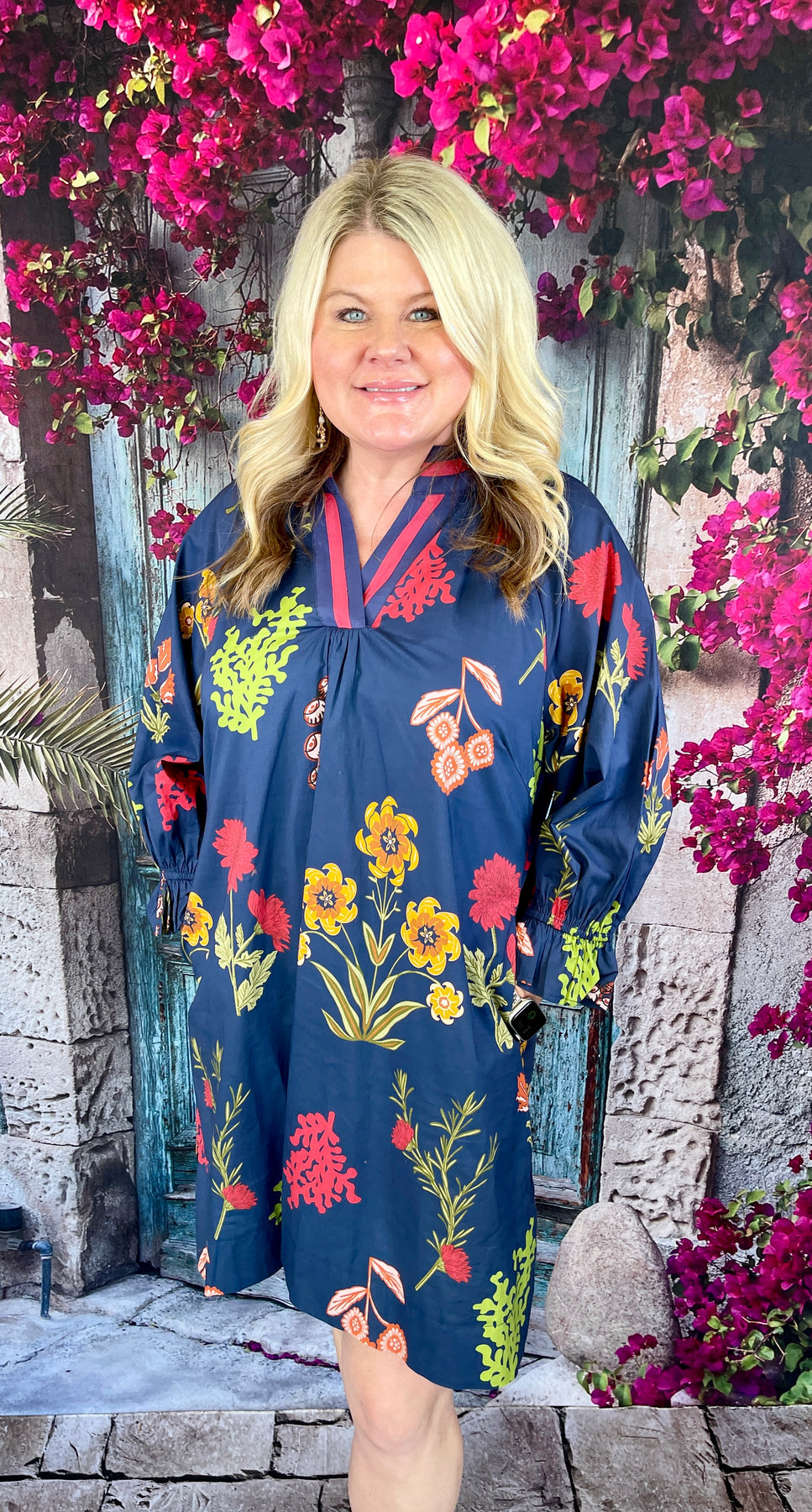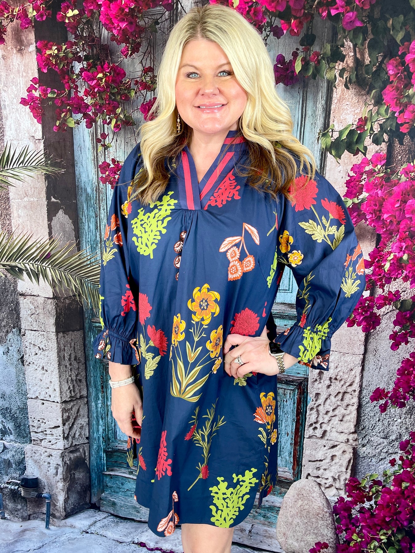 Chic and full of charm, the Midnight Mix Dress is the perfect blend of classic and playful. Featuring a multi-floral print with a v-neck open collar and contrast binding, this dress brings effortless elegance to any occasion. Crafted from soft, breathable cotton with a full lining for comfort and coverage.