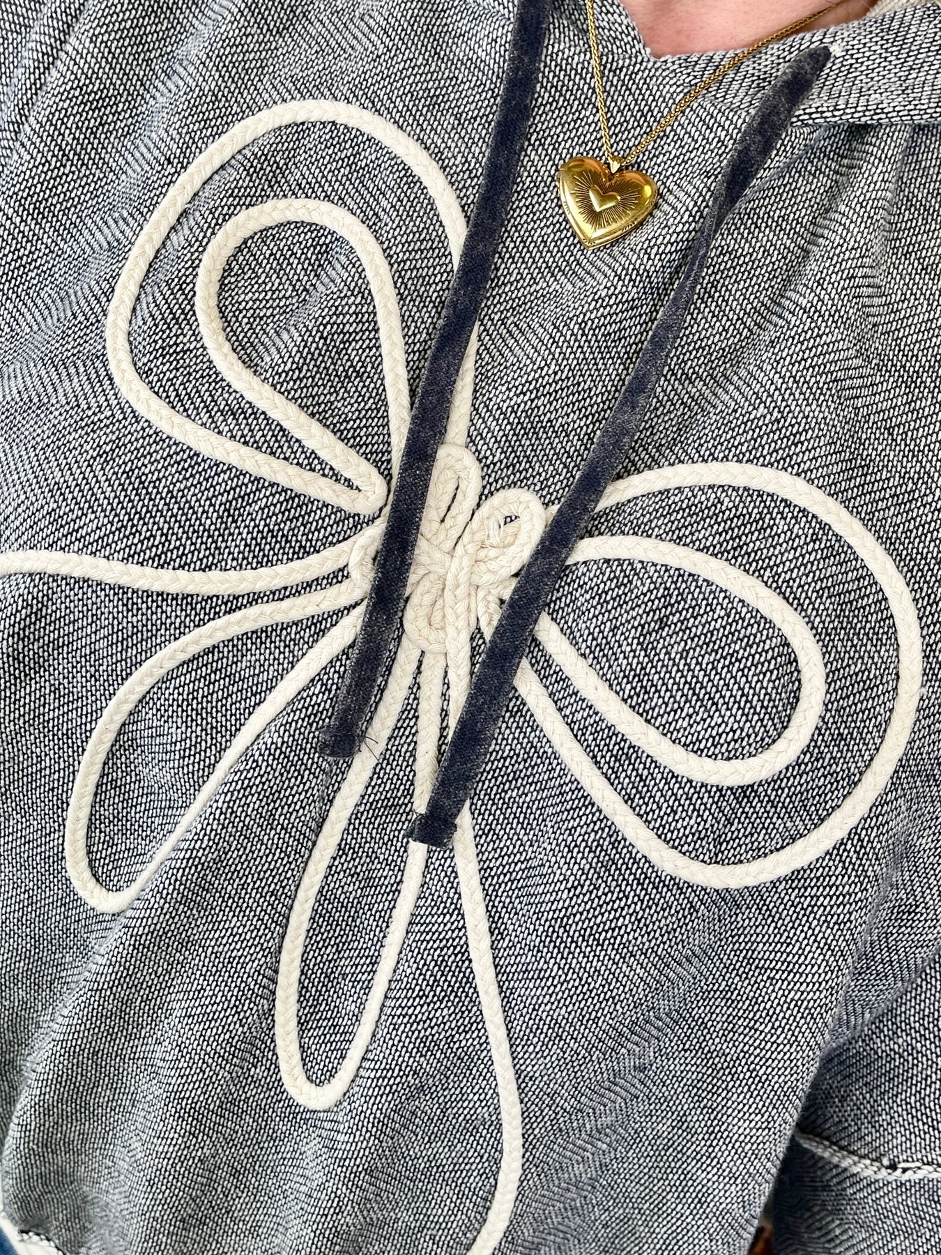 • White braided bow detail on front